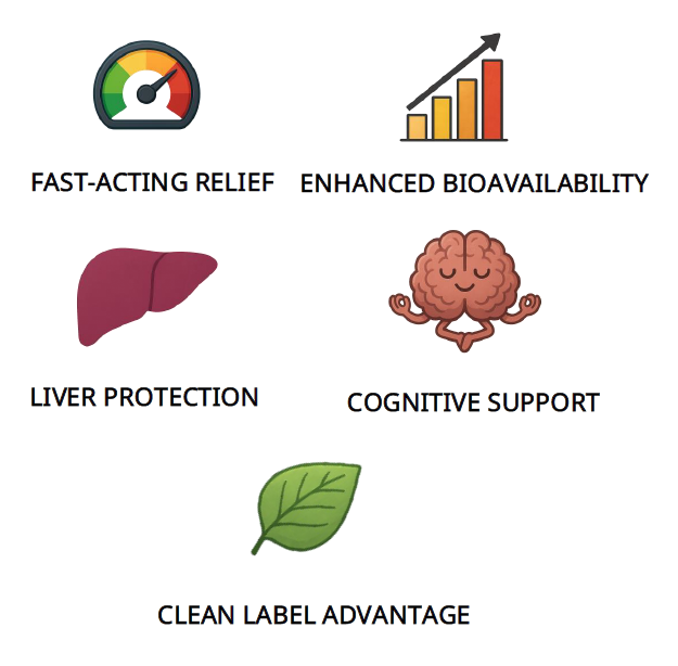 Patented DHM formulations with improved solubility and absorption deliver faster, stronger, and longer-lasting benefits.